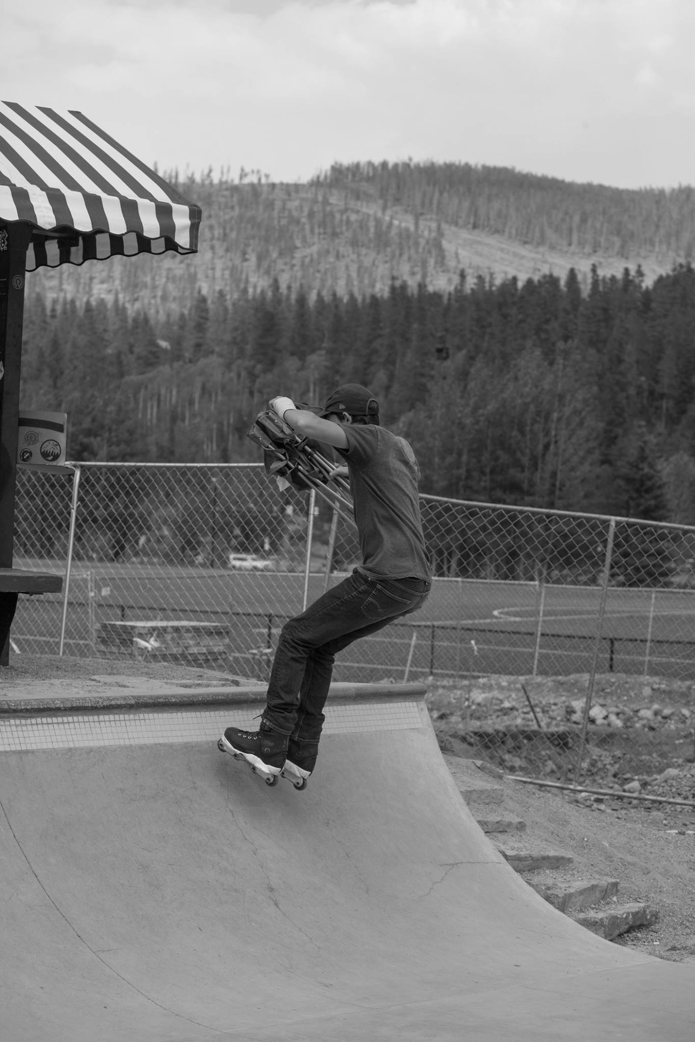 The Colorado Road Trip has now been an event for 20 consecutive years where we gather the crew and head into the mountains for the weekend to come together and takeover the small mountain towns along our path from skatepark to skatepark and campsite to campsite. What started in 1999 as seven high school rollerbladers doing an annual camping and skating trip has grown into a “festival” of 130 people on average from all over the U.S. and the world. The Colorado Road Trip is more than a just a trip, it has become a part of my life, helping shape who I am and providing me with memories and friendships I will cherish for the remainder of my life.